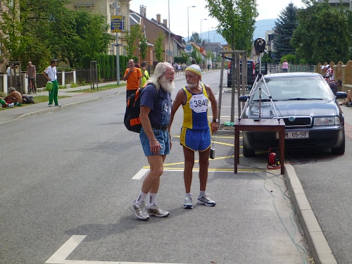 Start war am Ortsausgang Hradek Richtung Polen. Der erste Kilometer, zuerst noch in der Sonne, später eine wunderschöne Allee alter Eichen, führt zum Kreisverkehr. Dort geradeaus weiter und gefällig. Nach 1,6 Kilometer überlaufe ich die Staatsgrenze nach Polen. Hier unmittelbar befand sich die erste Versorgungsstation.. Der Streckenteil durch Polen ist nach weiteren knapp 1,5 Kilometern zu Ende. An der Neißebrücke geht es in das Stadtgebiet Zittau, zweiter Grenzübergang. Nach einem kurzen Stück auf der der Friedensstraße biegen wir scharf links ab in die Gerhart-Hauptmann-Straße. Der Laufkurs geht stetig leicht bergan, Schatten war hier am Wettkampftag Mangelware. Bei Kilometer vier Getränkestation. Am Ortsausgang zweigt der Kurs Richtung Hartau ab. Vor Kilometer sechs starkes Gefälle, da sind Radfahrer zum Schieben abgestiegen!