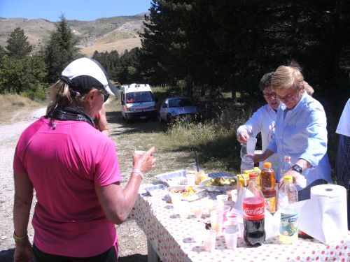 Der Chip zur Ortung ist nicht mehr notwendig, ich gebe ihn ab und hole mir Verpflegung. Auf Suppe verzichte ich, aber Brot und Käse lasse ich mir gerne schmecken. Auch Wasser trinke ich nun im Schatten sitzend.