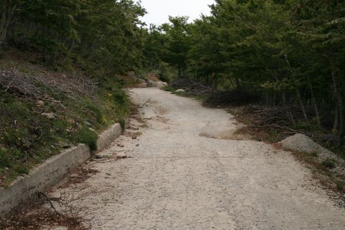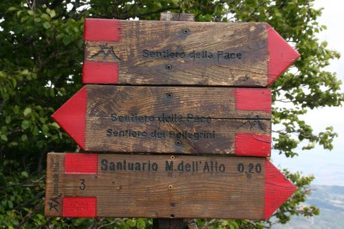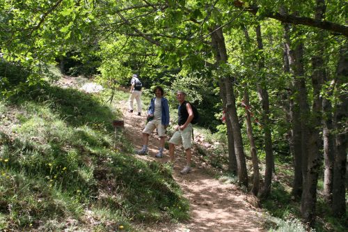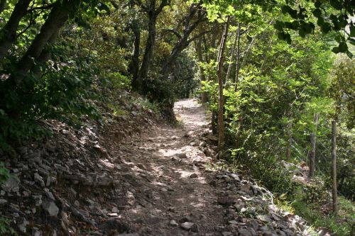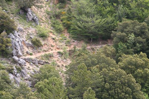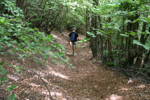 Durch Wald geht es auf schmalem Weg steil hinunter zu einer Scharte und von dort hinauf zur Madonna dell'Alto. Auch von hier habe ich einen schönen Weitblick. Wir umlaufen das Santuario und es geht eine lange, breite und steile Serpentinenautobahn nach unten. Zeit kann man beim Abstieg jedoch nicht viel gut machen. Der Weg ist nicht schön zu laufen und erfordert höchste Aufmerksamkeit.