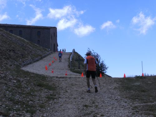 Am Abzweig des Ecotrails (Corto) werde ich von den beiden Führenden des Ecotrails eingeholt aber nicht überholt, da sie dem Pfeil Corto folgen und nach rechts abbiegen. Ich folge der Markierung Lungo und steige und steige. Der Weg ist bekannt aber trotzdem noch weit. Ich überhole immer wieder Läufer und bin gut drauf. Es war absolut richtig langsam zu beginnen und die Kräfte einzuteilen.