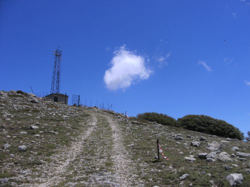 Wir kommen wieder auf den Weg Nr. 16 und später auf Nr. 3. Der Untergrund wie die Landschaft wechseln. Ich freue mich auf den Gipfel und schreite rasch voran. Da ist der höchste Punkt auch schon erreicht. Ich sehe das Meer, leider aber nicht den Ätna.