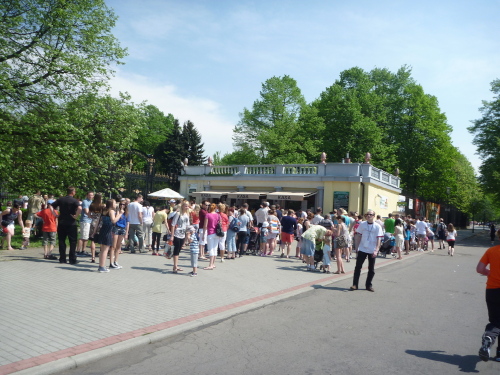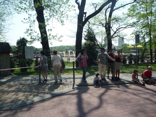 Vor dem Zoo stehen wirklich Massen, vor dem Eisstand, dem Waffelstand und in den Biergärten, überall Massen von Menschen. Bei uns in Deutschland ist die soziale Struktur in Zoos und öffentlichen Gärten nicht so entspannt, hier ist es irgendwie wie in alten Zeiten, sehr gepflegtes Publikum, sehr höflich, auch wenn man sich kaum für uns interessiert. So hält man uns gerne die Wege frei und keiner der zahlreichen Kinderwagen würde jemals unsere Laufstrecke kreuzen. Die Musik aus dem Vergnügungspark und das Kreischen der Mädchen, die vom alten Zechenturm mit der Riesenrutsche ins Wasser platschen, übertönt das Murmeln der Menschen im Frühlingsgarten. Sehr angenehm, wenn ich nur nicht so leiden müsste.