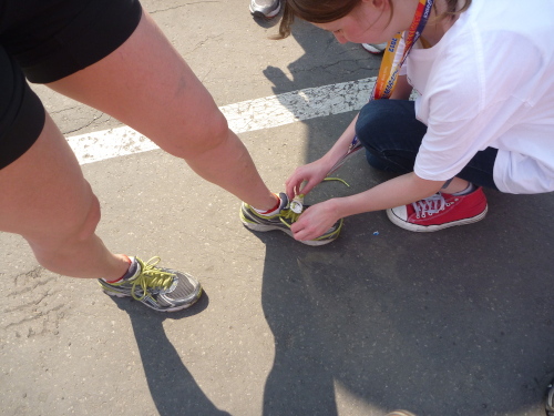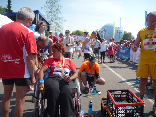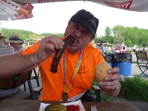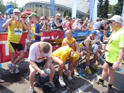 Hier in der Ecke Europas trafen drei Nationen aufeinander, drei unterschiedliche soziale Parteien und dank des Marathons kann ich noch davon erzählen. Ich beschliesse meine Marathonreise in die Vergangenheit. Wir können verdammt froh sein, dass wir uns jetzt nicht mehr kloppen. Wir sind alles Menschen, gerade die Marathonläufer. Die sind aber jetzt auch alle absolut abgekämpft hier im Ziel, die würden sich nie mehr kloppen.