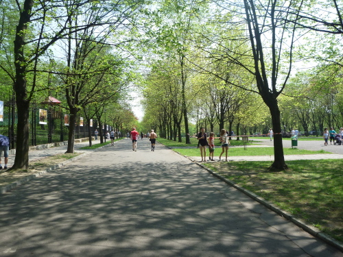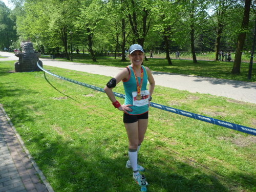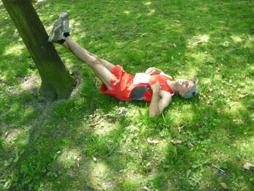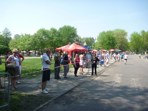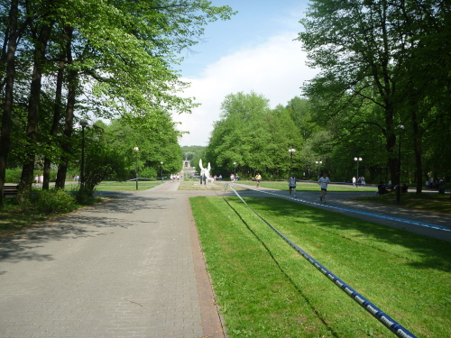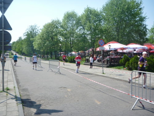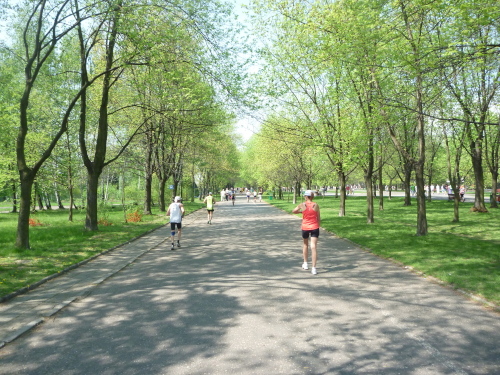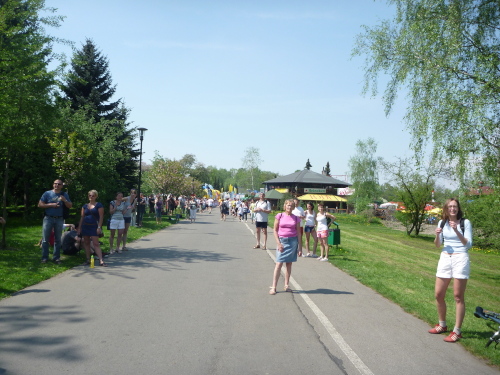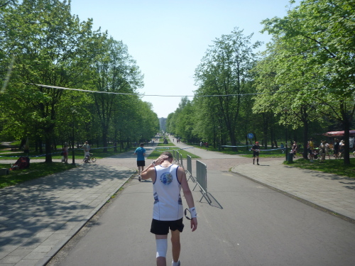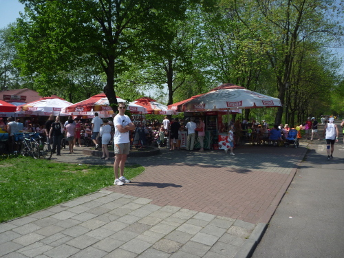 Irgendwann versuche ich, zu laufen. Irgendwann geht es durch Chrozow III Richtung Süden. Irgendwann bei 37 kommen wir in den Slaski Park( WPKW), ich habe mich über weite Strecken im Schritttempo geschleppt, bin total am Arsch. Die vielen Leute hier sind jetzt ein positiver Schock für mich. Es sind sehr viele junge Familien, alle gutaussehend, wohlhabend und nett anzuschauen.