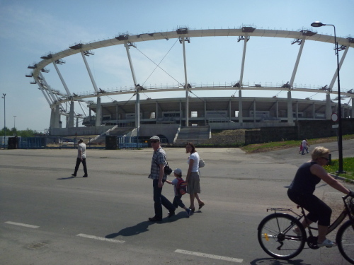 Das Schlesien Stadion ist Ersatz-Austragungsort der Fußball-EM. Früher ging mein Großvater regelmäßig zu den Spielen des 1. FC Kattowitz , der war 1927 polnischer Meister. Das war aber nicht so einfach, denn die gegnerische Mannschaft (weiss nicht wer) hat vor dem Endspiel sämtliche Bälle zerstochen. Man hatte sich hier immer unfair gestritten. Das Endspiel wurde dann wiederholt. Der 1. FCK verschwand dann irgendwie von der Bildfläche. Heute Abend spielt Ruch, der Verein aus Kattowitz um die Meisterschaft, wenn ich das richtig mitbekommen habe.