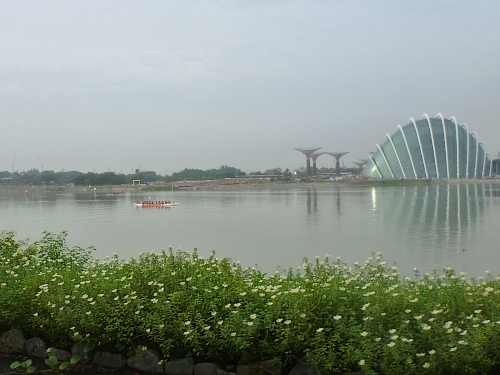 Wir überqueren eine Staumauer, welche den Singapore River vom Meer trennt und damit ein Süßwasserreservoir schafft. Man kann das Leitungswasser in Singapur übrigens gefahrlos trinken. Trotz der täglichen Regenfälle hat die Stadt aber ein Süßwasserproblem und muss den wertvollen Rohstoff sammeln, wo es nur geht.