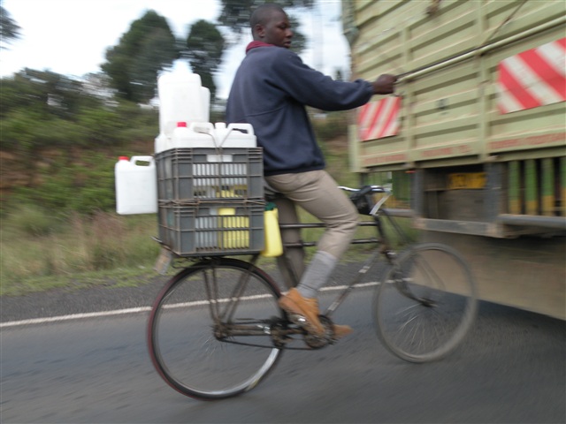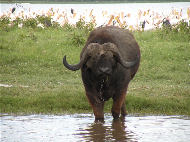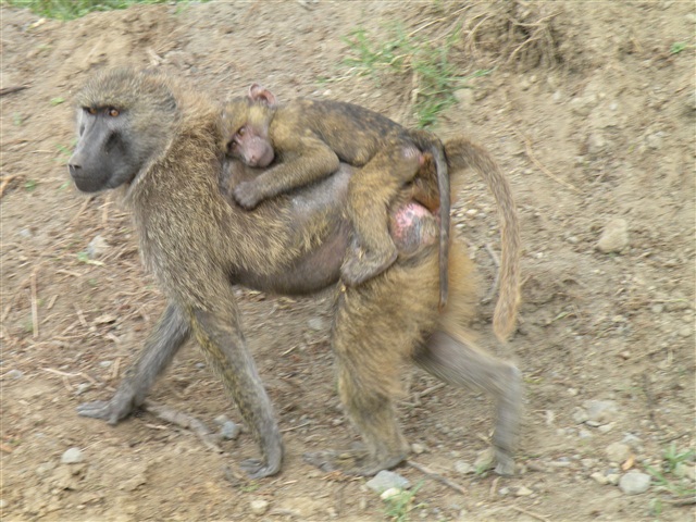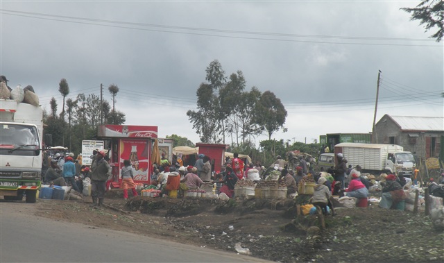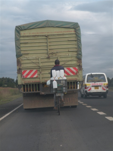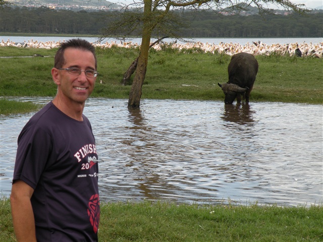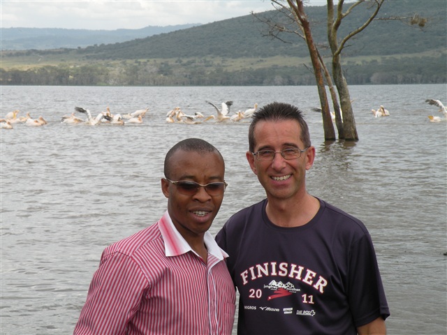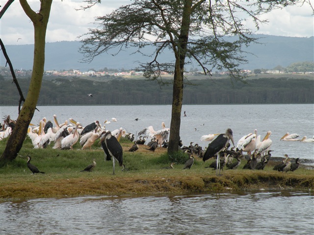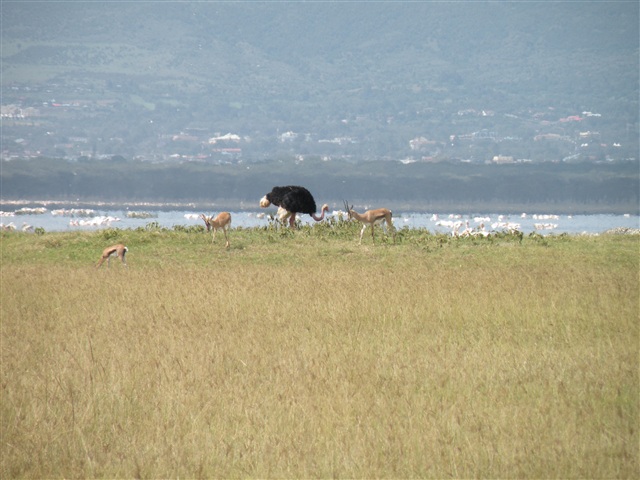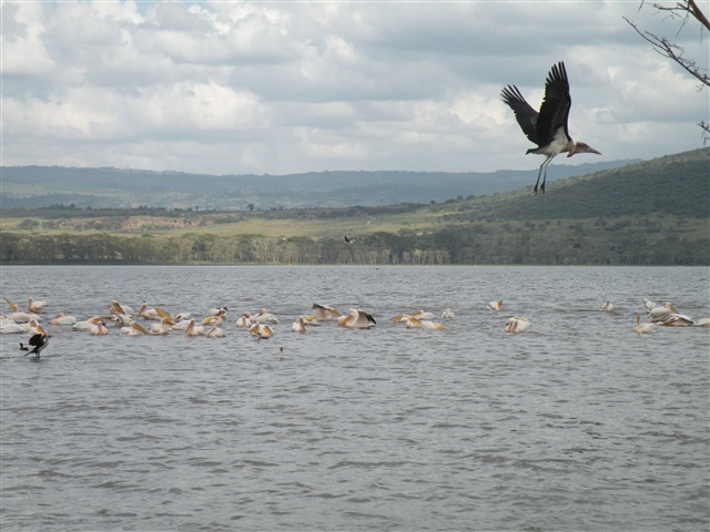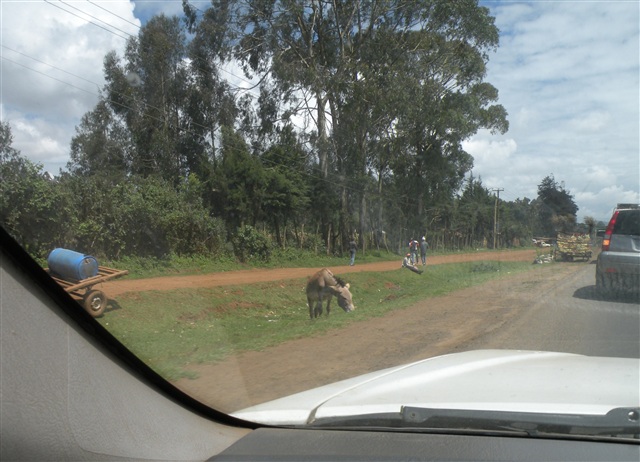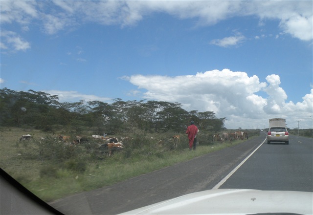 Aber natürlich bin ich nicht nur aus karitativen Gründen hier, sondern will diese für mich außergewöhnliche Reise auch touristisch nutzen. Also mal ganz eigennützig. In einer Ein-Tages-Tour läßt sich gut der Lake Nakuru-Nationalpark erreichen und besichtigen. Was wir auf der Fahrt über den sog. Highway sehen, spotte jeder Beschreibung. Teils zwei, meist aber nur zweispurig ausgebaut, tummelt sich hier alles, was Spaß daran hat oder sich eben tummeln muß. Uralt-Fahrzeuge, Schlaglöcher, Zebrastreifen als Fußgängerüberweg (!).