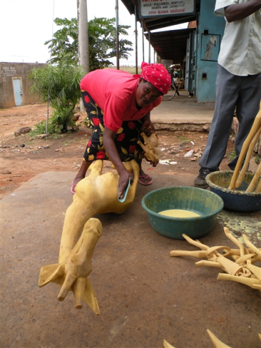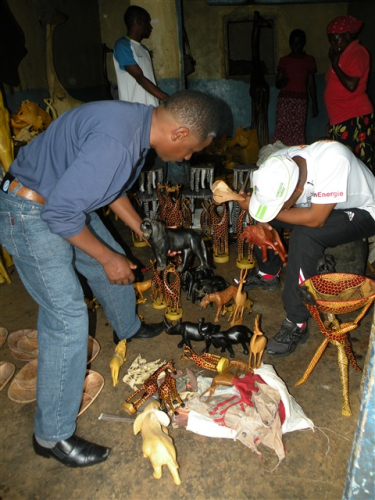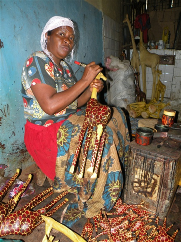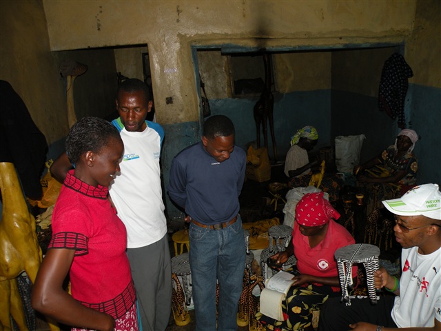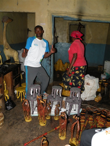 Nach dem Besuch einer Holzschnitzerei, in der mehrere Großfamilien in mühseliger Handarbeit aus Baumstämmen und Ästen die schönsten Dinge zu Spottpreisen herstellen, besuchen wir das Blindenzentrum, das seinerzeit Henry wieder auf die Beine stellte und seit dieser Zeit von ihm in vielfältiger Weise unterstützt wird. Nach der sechsmonatigen Rehabilitation, die das Erlernen der Blindenschrift und die Führung eines möglichst eigenständigen Lebens dieser zum Teil tief traumatisierten Menschen ermöglicht, können sich diejenigen, die noch keine Berufsausbildung genießen konnten, zum Strickmeister (Arnold Schwarzeneggers Strickmaschinen sind unverändert im Einsatz), Sattler, Tischler, Schneider, Computerbediener oder Masseur ausbilden lassen.