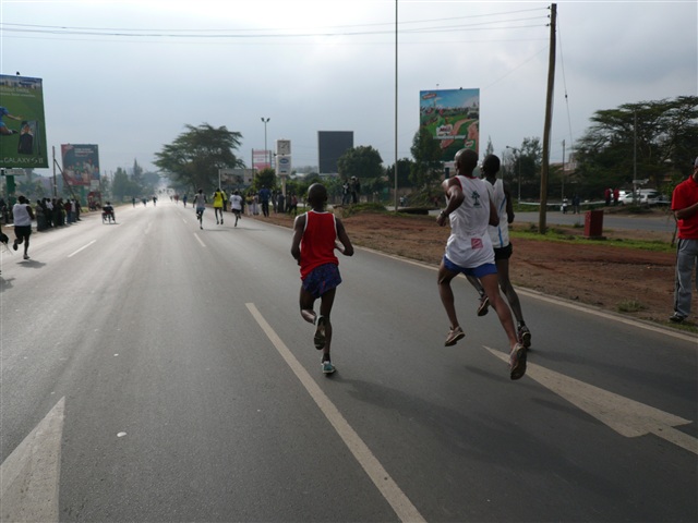 So langsam finden sich auch einige der hier gestarteten Läufer des Trainingscamps aus dem Kanjeru-Slum ein. Wenn man sich zwei Beispiele vor Augen führt, kann man erkennen, welches Potential hier schlummert und aus purer wirtschaftlicher Not gehoben werden muß und wird: Ein Halbmarathoner ist mit einer beachtlichen Zeit von 64 min. nur Vierundzwanzigster. Mit anderen Worten: Dreiundzwanzig sind schneller als 64 min. gelaufen, der Sieger bei nicht flachem Verlauf 61:30 min!