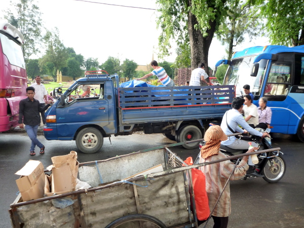 Und das war es immer noch, als ich aus dem rechtsgesteuerten Gebrauchtwagen krieche. Eigentlich fährt man in Kambodscha rechts, also theoretisch, denn am rechten Rand kommen einem die entgegen, die es nicht auf die andere Seite schaffen.