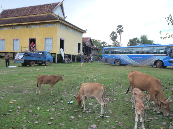 Die Fahrt zum ersten Camp dauert ewig, die Straßen sind Mist. Pause an einem Marktplatz. Aggressive Bettelei, man kennt die Touris hier. Spinnen, sind die Attraktion, frittiert oder lebendig werden sie auf Tabletts gehäuft angeboten. Mittagessen in Kampor Thom, auch hier Insektenmärkte. Die frittierten Heuschrecken esse ich nicht aus Angabe, auch frittierte, ungeschälte Minigarnelen, zubereitet wie eine Art Kartoffelpuffer, sind traumhaft.