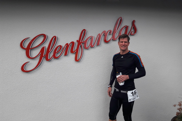 Als ich am frühen Samstagmorgen die Startunterlagen in der Glenfiddich Distillery in Dufftown abholte, lag der Duft von gemälzter Gerste in der Luft. Ich war einer der letzten Athleten, die in einen der vier Busse stieg, welche die Teilnehmer des 2. Dramathon zur Startlinie bringen sollte. Gute 20 Minuten dauerte die Fahrt zur Glenfarclas Distillery, welche bereits zeitweilig die Whisky-Produktion einstellen musste. Gerste und Wasser waren aufgrund des schlechten Sommers Mangelware.