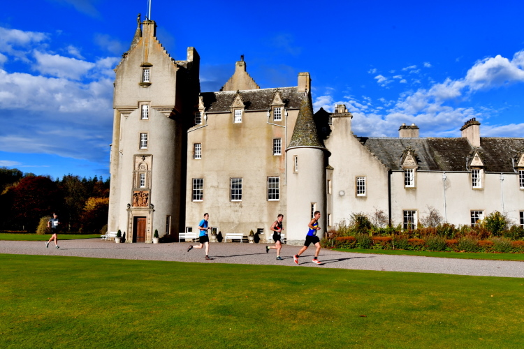Ich rannte direkt ohne “dip” über die Straße und sorgte damit für verwunderte Gesichter, wobei sich auf meine Gesichtszüge nur wenige Meter später ebenfalls Verwunderung legte. Die Laufstrecke führte direkt vom Uferweg des Avon auf die Kieszufahrt des imposanten Ballindaloch Castle. Die Schlossbewohner persönlich standen davor und feuerten die Athleten enthusiastisch an!