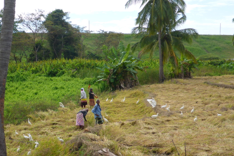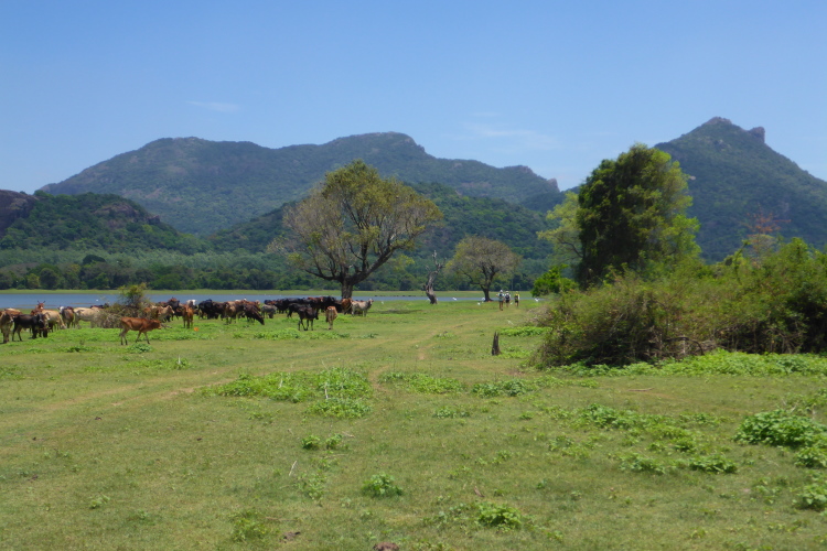 Im ersten Shop treffe ich meine Mitleidenden. Wir trinken „Soda Creme“, das hat die selbe Süße wie Cola hat, tötet aber nicht. Oben am Lake Kandalama nehmen wir den Weg rechts herum. Es folgen 12 Kilometer reinste Qual in einem See-Wiesengebiet, das mich garantiert noch Jahre in meinen Träumen beschäftigen wird: Es ist eine Landschaft wie im Jurrasic Park: grün, grell mit seltsamen Pflanzen unglaublich vielen Vögeln und großen Herden.