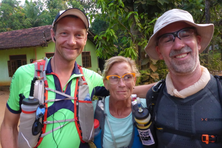 Gary, James und Beth sind bei mir. Wir treffen uns alle 2 Kilometer im raren Schatten eines Baumes, dösen dann minutenlang weg. Es ist wie beim Rückzug von El Alamain. James fragt, ob ich eine Zielzeit sagen könnte. Ich sage, wir hätten vor einer Stunde da sein müssen. Ja, wir hätten schon längst da sein müssen!