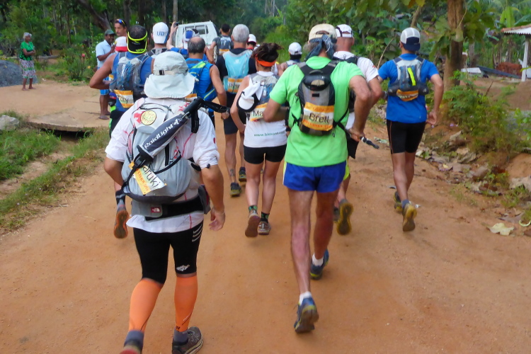 Ich kenne die Strecke und meine mich zu erinnern, dass es viele Shops gibt. Doch die Erinnerung trügt. Es geht hoch zum Kandalama Lake und wieder runter. Kreuz und quer, eine Streckenführung, die jeden Läufer verzweifeln lässt. Aber ich liebe diese Spielereien. Ok, jetzt akzeptiere ich sie nur.