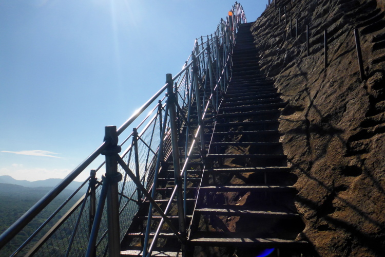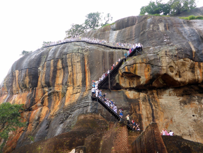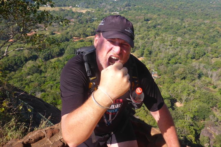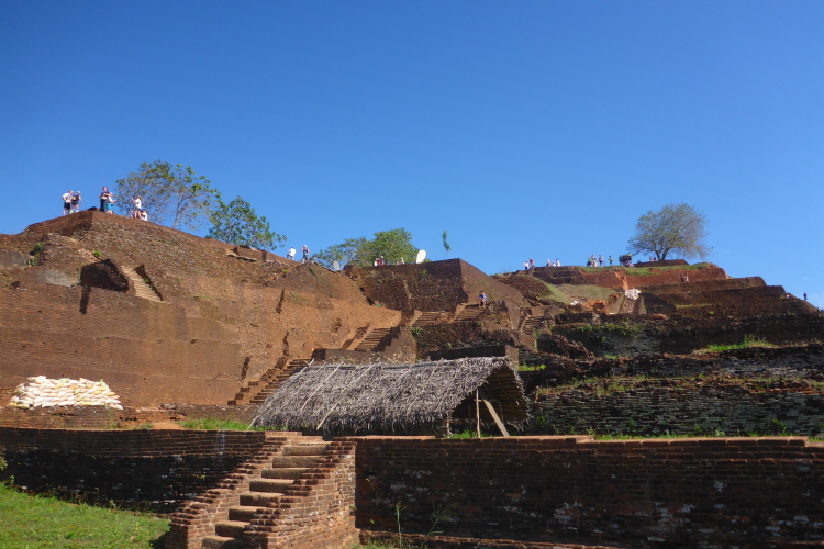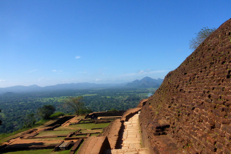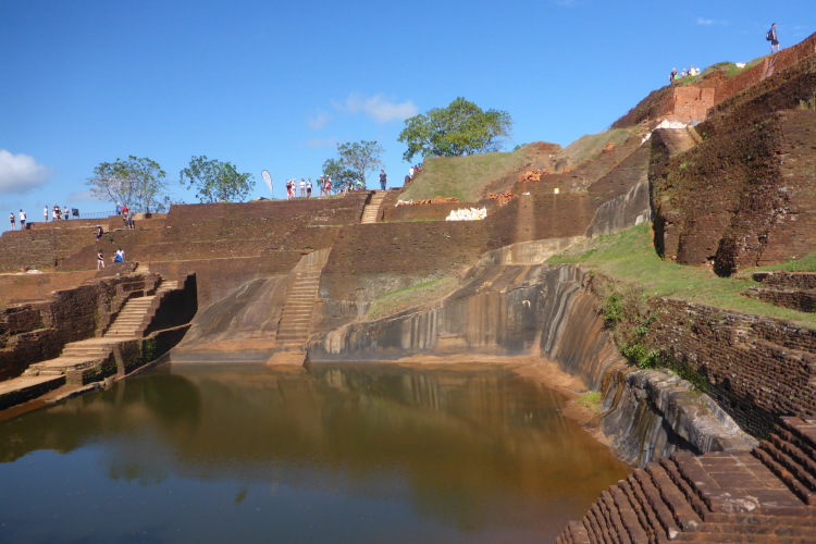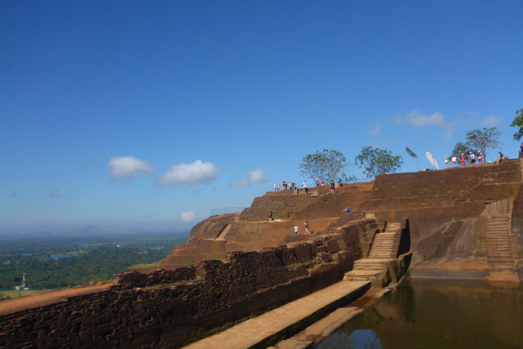 Auf dem Felsen gibt es pyramidenartige Aufbauten aus Backsteinen. Die Ausgrabungen laufen immer noch. Das Palastgebäude bestand aus Holz und ist nicht mehr vorhanden. Auffallend sind die vielen großen Zisternen, die die Trinkwasserversorgung im Falle einer Belagerung sicherstellen sollten. Hier oben fühlt man sich, als hätte man einen 4000er bezwungen. Es ist kühl, letztes Jahr war es sogar kalt. Der Blick geht über fast ganz Sri Lanka. Die letzten Meter hinauf zum höchsten Punkt der Pyramiddenbauten gehen nur noch auf allen Vieren. Mein Zieleinlauf ist Nebensache, ich habe mein Ziel einfach nur erreicht.