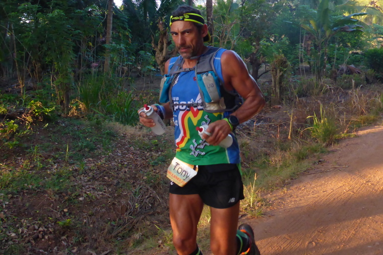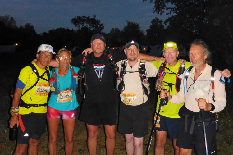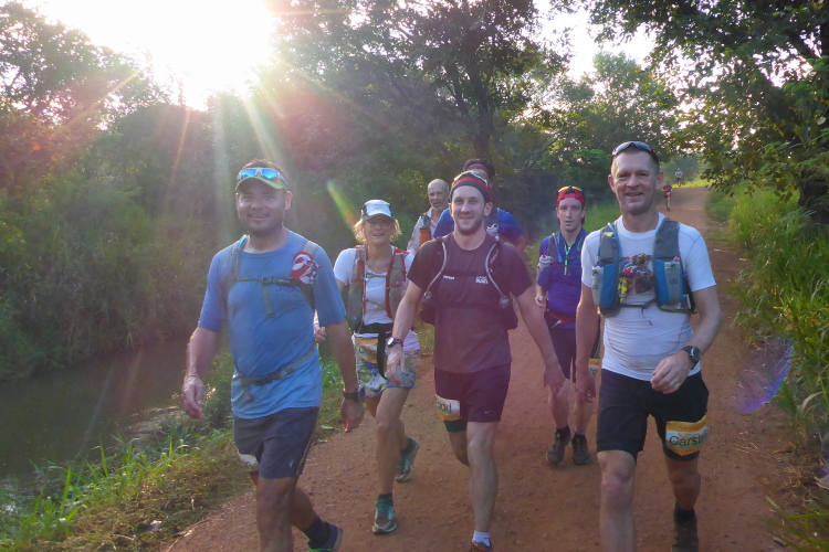 So locker ich hier schreibe, das Ding das wir hier reißen, ist äußerst extrem. Wir bekommen 6 Tage lang nur Wasser von der Organisation. Es ist morgens sehr schwer, benutzte Socken anzuziehen. Rocktape ist die amerikanische Version des Kinotapes und wird mit Spray zusätzlich an der Haut befestigt und liegt trotzdem in kleinen Bergen im Camp herum, als wir Langsameren den Frühstart im Dunkeln angehen.