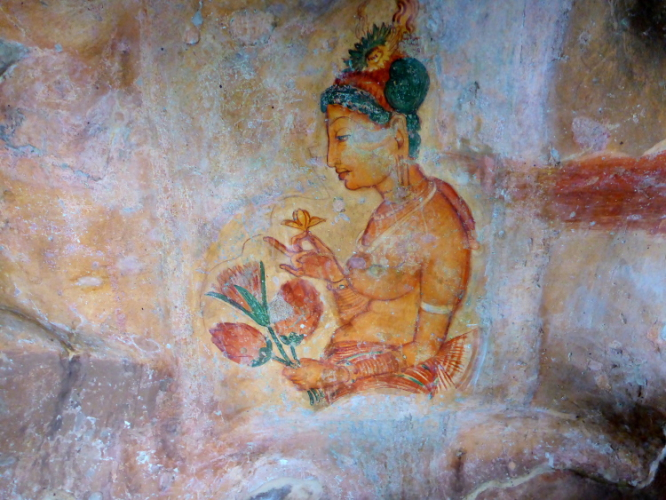 Der riesige Magmablock Sigiriya, auf Deutsch Löwenfelsen, wurde von Kassapa I (473-491 n. Chr) ausgebaut. Kassapa (Kashyapa) hatte seinen Vater, König Dhatusena ermordet, um die Herrschaft zu erlangen. Als Sohn einer Nebenfrau des Vaters hatte er aber keine Chance. So musste er sich auf diesen unbezwingbaren Felsen zurückziehen. Unbeliebt bei Volk und dem rechtmäßigen Thronfolger Moggallana liess er dort oben einen Palast mit allem Prunk bauen. 200 Meter überragt der Magmablock die Landschaft, das Plateau mit den steil abfallenden Rändern lässt sich locker in 30 Minuten umrunden.