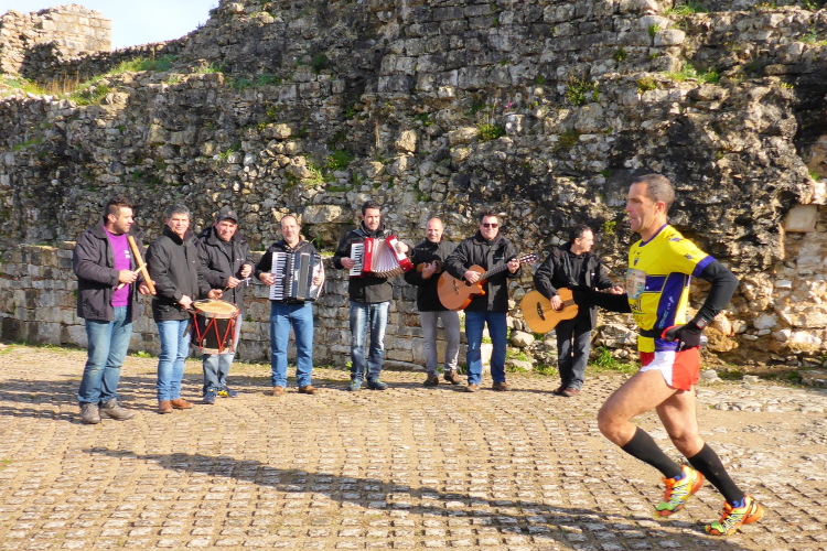 Casmilo km 93: Febras sind knusprige Schweinerippchen. Es sind jetzt 6000 Läufer durch und immer noch sind die Körbe gefüllt mit Leckereien. Die Dorfbewohner feiern einfach weiter. Ich lerne den Queijo Rabaçal lieben, der ist zwar aus Ziegen- oder Schafsmilch, aber, ich schwöre, das schmeckt man nicht! Es gibt diesen Käse in verschiedenen Reifegraden, auch als Frischkäse, der dann mit reichlich Honig beträufelt wird. Honigtöpfe stehen hier überall, man tunkt das Brot oder den Käse hinein, oder nimmt gleich den Plastiklöffel.