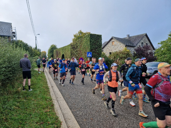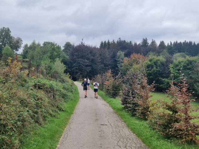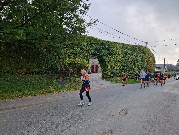Ausgewählt habe ich den Lauf wieder einmal, weil ich nur genau an diesem Tag noch Zeit im September hatte. Wenn man einen Trailrun mit mindestens Marathondistanz sucht, wird man in Belgien bei betrail.be praktisch immer fündig. Die Internetseite des Laufs selbst ist recht witzig gemacht, sehr übersichtlich und, was in Belgien nicht häufig ist, auf Französisch, Niederländisch und sogar Deutsch gehalten. Man fühlt sich also sofort eingeladen – neben mir ging das allerdings nur drei anderen Deutschen so, von fast 900 Teilnehmern. Zudem sind es von Düsseldorf nur 130 km, also bei einer Startzeit von 9 Uhr äußerst angenehm.