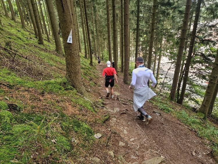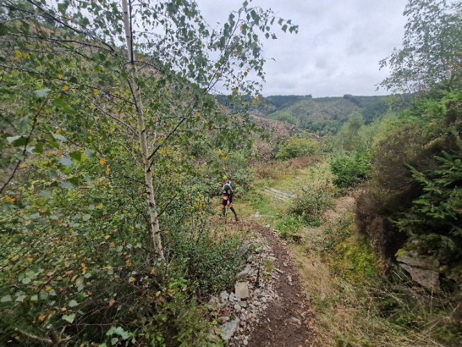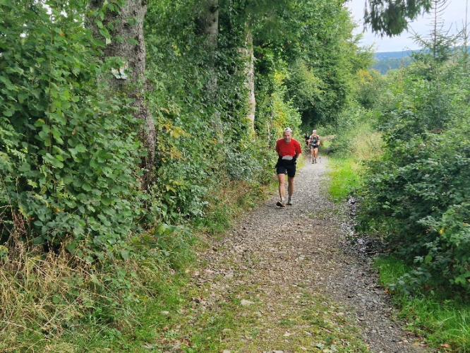 Der Streckenverlauf ist auch recht witzig, die ersten 21 Kilometer geht es in einer langen Acht nach Norden und zurück an den Start, mit einigen sehr langen, geraden Strecken. Die untere Null der Acht ist der 14-Kilometer-Lauf. Vom Start geht es dann noch einmal etwas nach Süden, aber diesmal in vielen Schleifen und mit 80% der Höhenmeter durch die schmalen Flusstäler. Der Halbmarathon entspricht diesem steileren Abschnitt, so dass er durchaus auch reizvoll ist. Versorgungsstationen gibt es bei Kilometer 7, 14, 22 und 33, also auch perfekt verteilt.