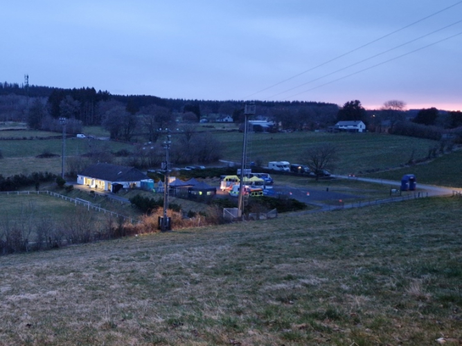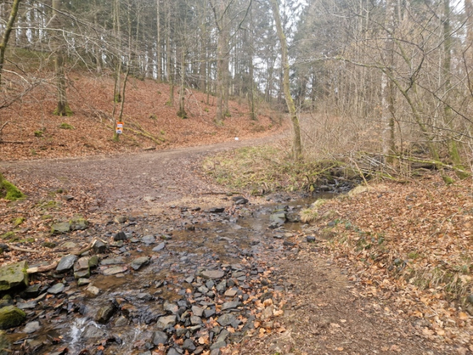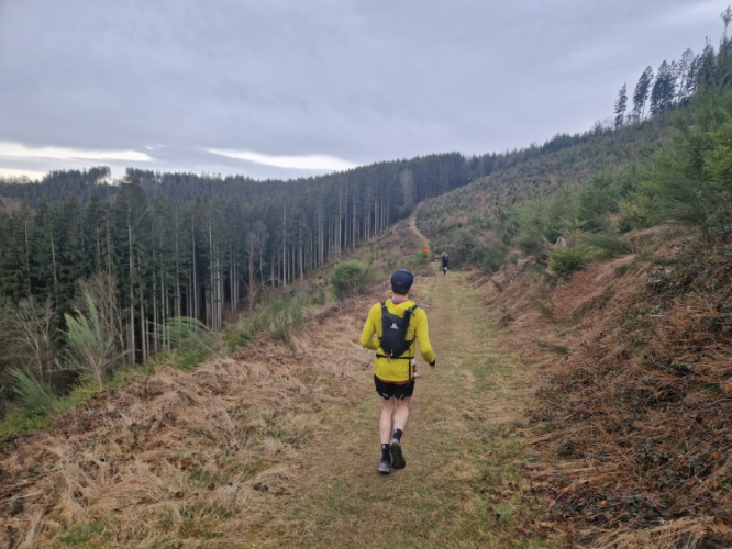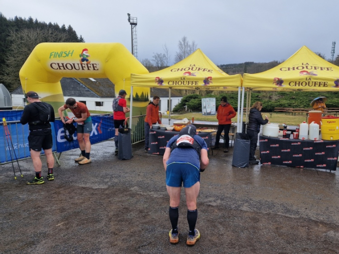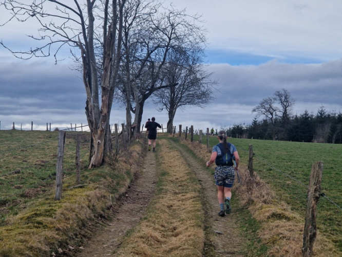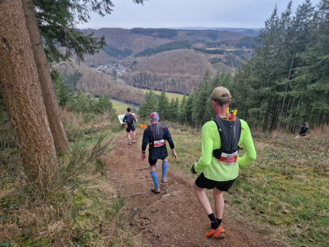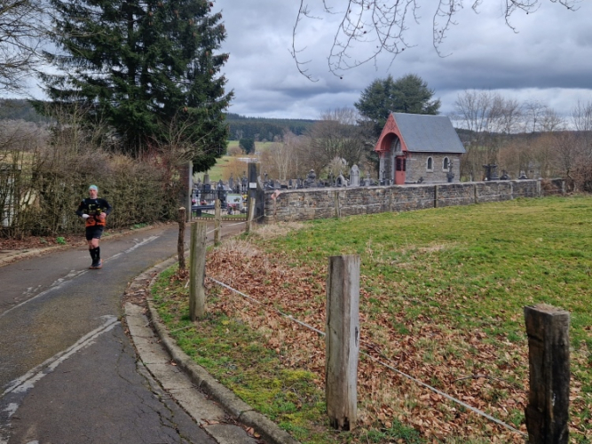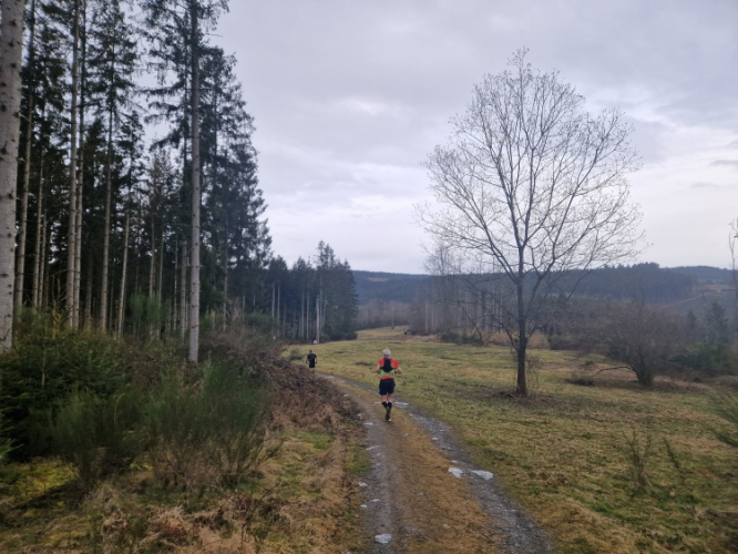 Der Lauf startet in dem 290-Seelen- Dorf Bérismenil, in der Mitte zwischen La Roche-en-Ardenne und Houffalize gelegen, und führt in drei verschiedenen Rundstrecken kleeblattartig vom Ort weg und zurück, so dass man 3x15 km vor sich hat und sich jedes Mal bei der Versorgungsstation am Start stärken kann. Für die Veranstalter sehr gut zu organisieren, aber auch ohne Nachteil für die Läufer, da sich die einzelnen Schleifen stark unterscheiden und es dadurch recht abwechslungsreich bleibt. Und man hat es so natürlich bei einem DNF leichter, wieder zurück zum Start zu kommen, maximal 7,5 km. Die gleichen Strecken werden übrigens von allen Distanzen genutzt, allerdings nie zur gleichen Zeit, so dass es sich nur ganz am Anfang an ein paar steilen Stellen staut, später aber recht einsam wird.
