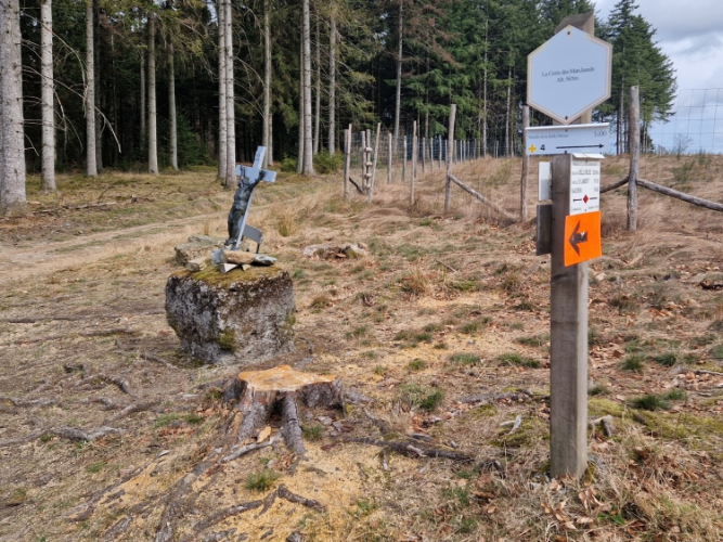 Auf der Strecke gibt es nur ein einziges Denkmal mit einem Flugzeugpropeller. Dieser stammt von einer dort 1944 abgestürzten englischen B-17, die Besatzungsmitglieder haben bis auf eine Person wohl alle überlebt. Der Trail ist naturbelassen, bietet aber auch keine der zahlreichen größeren Burgen und Schlössern in Wallonien. Bis auf kurze Strecken durch den Ort Bérismenil selbst läuft man auch wirklich nur durch den Wald und etwas auf Wiesen und kreuzt keine Straßen. Sehr angenehm, es braucht also auch keine Streckenposten oder Helfer für Überquerungen. Mir persönlich gefällt das deutlich besser als von Dorf zu Dorf zu laufen, wie es das ja auch manchmal gibt.