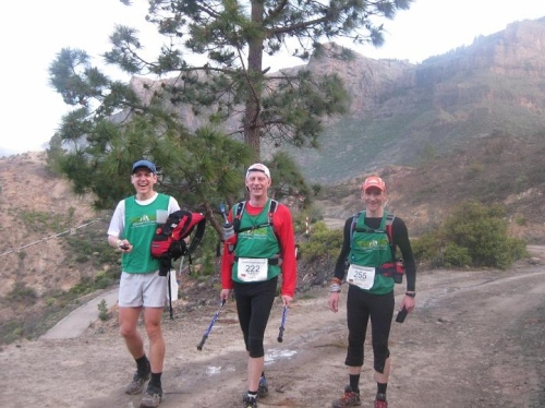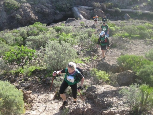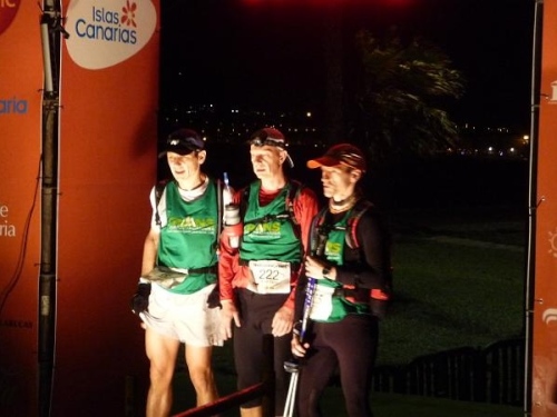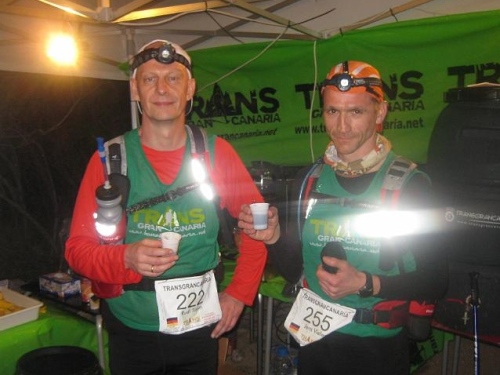 Die Sonne geht unter und wir laufen in die 2. Nacht hinein; Müdigkeit regiert. "Malaga?" - "Malaga!" - alle noch zusammen. Eine Perlenkette aus Stirnlampen und roten Rücklichtern schlängelt sich die letzten Anstiege hoch und weist die grobe Richtung. Ab der Ortschaft "Teror" (der Name wird Programm) ist bei Kilometer 101 die Luft komplett raus. Oberhalb der Stadt kommt extrem scharfer Wind auf. Wir suchen Schutz hinter einem Geländewagen und streifen die Jacken über - alles richtig eingepackt! Wie Markus jetzt noch in kurzer Hose laufen kann. Brrr, wenn es so etwas wie "fremdfrieren" gibt, dann mache ich das gerade durch. Bitte nur kein Regen, meine Stimmung ist fast auf Null! Ich bin müde, habe mir mittlerweile 15L Wasser die Kehle runtergestürzt und selbiges satt. Jetzt beginnt der Teil, der beim 24h-Rennen keinen Spaß mehr macht: Alles jenseits der 20 Stunden.
