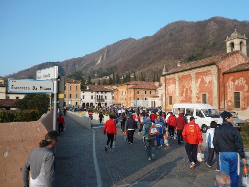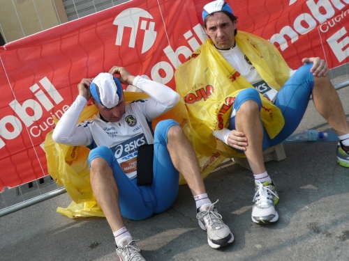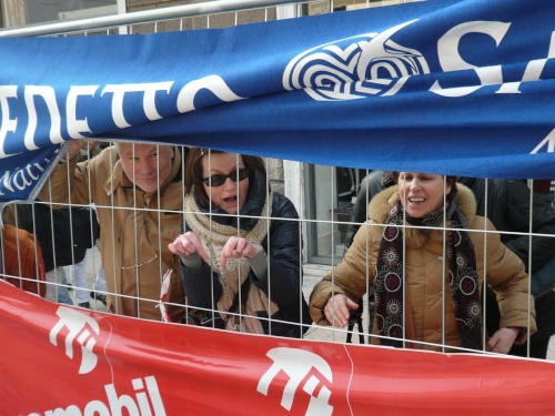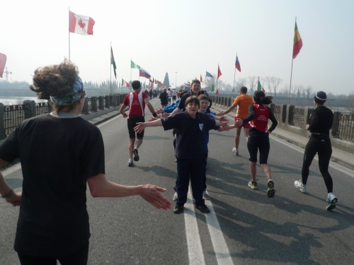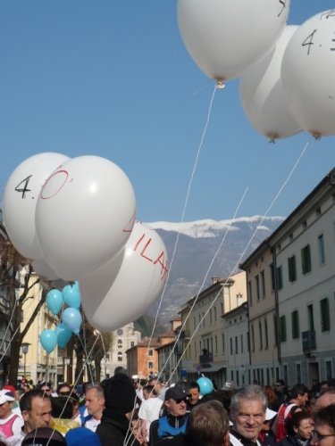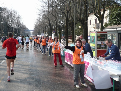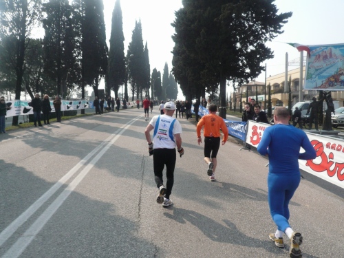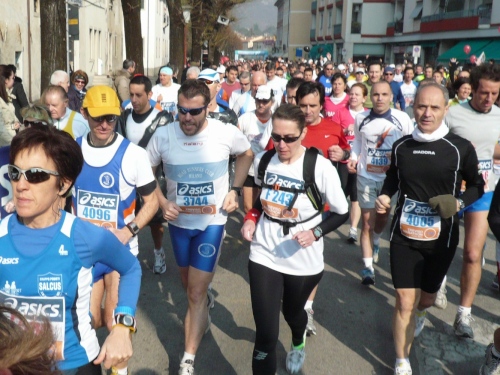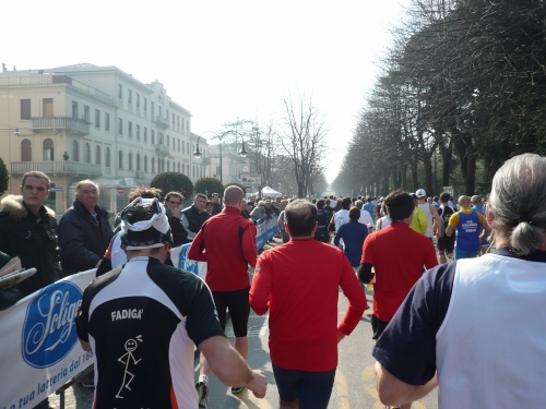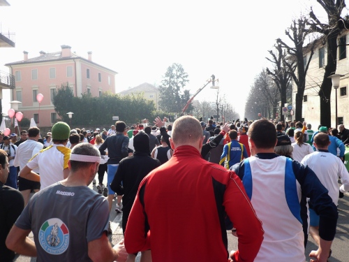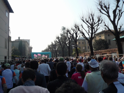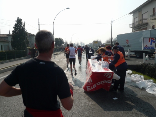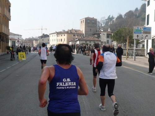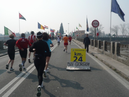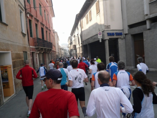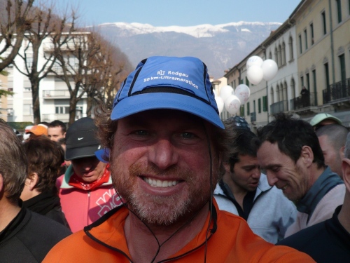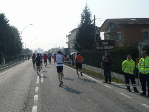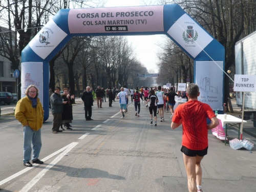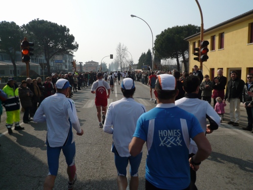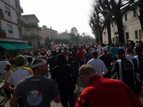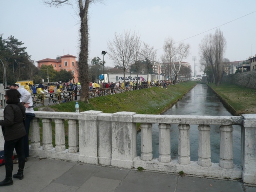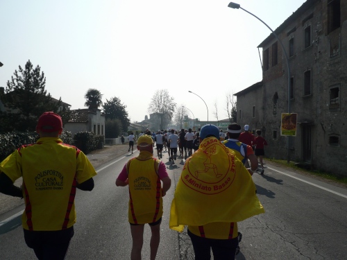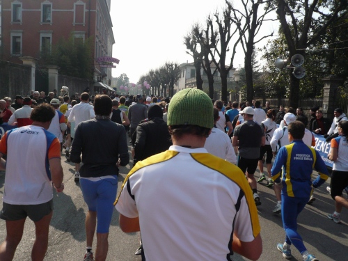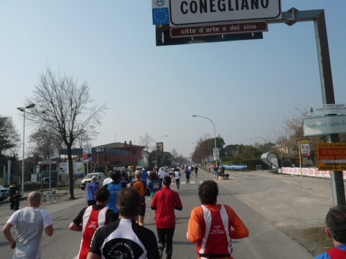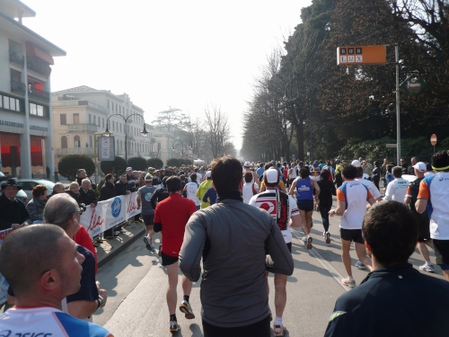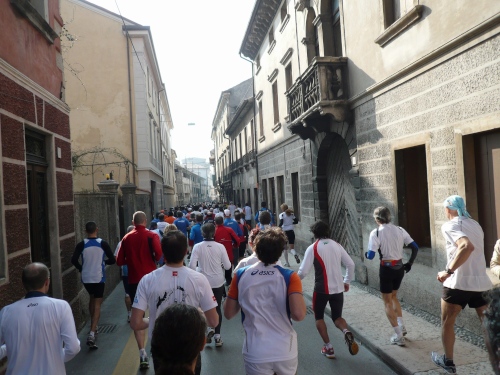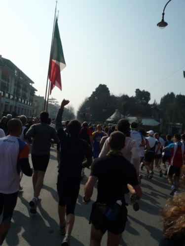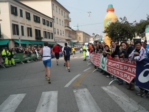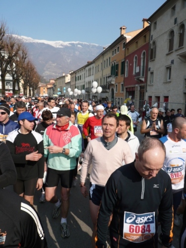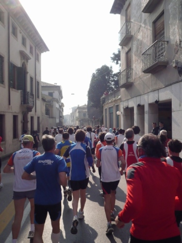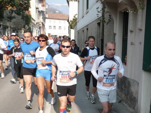 Orte wie Colle Umberto und San Vendemiano rauschen vorbei. Alle 500 Meter eine Band, ich drehe meinen mp3-player auf: „ Against all Odds“ und mühe mich durch den Pulk, der sich um den 4 Std-Pacer gebildet hat.