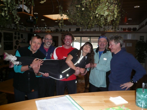 Erst wollte ich heulen doch dann sieht die Situation so grotesk aus, dass wir uns minutenlang auf die Schenkel klopfen und wiehernd und unter Tränen Richtung Startplatz eiern.