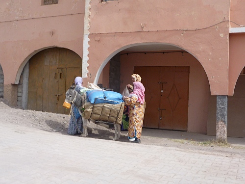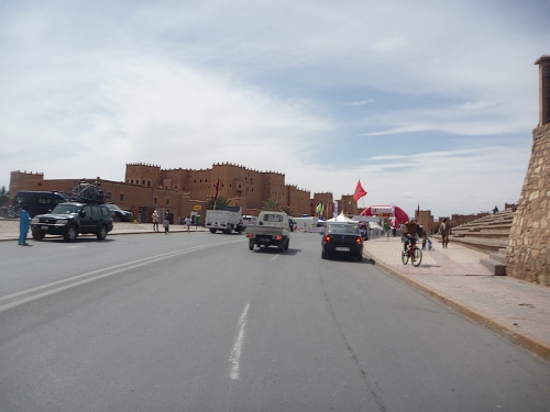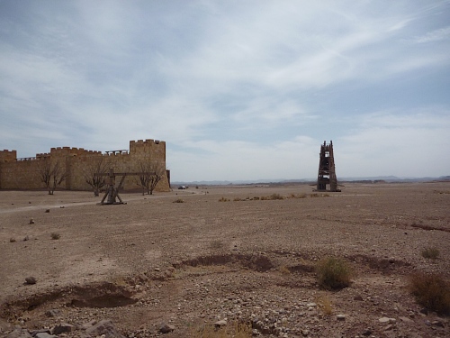 Ouarzazate entstand vor 100 Jahren aus einem Stützpunkt der französischen Fremdenlegion. Viele Kriegsgefangene des deutschen Afrikacorps vom Rommel waren hier bis Kriegsende interniert. In den 50er Jahren begann mit Hitchcocks Film „Der Mann, der zuviel wusste“ die Filmindustrie zu boomen. Der Film, der demnächst in unsere Kinos kommen soll, ist „Der Ausländer“. In der Wüste stehen riesige Festungen. Wir kommen am Drehort von „Asterix und Obelix“ (mit Gerald Depardieu) vorbei. Römische Belagerungstürme und Steinschleudern stehen und liegen zerbrochen in der Gegend rum, die Festungen werden schon für die nächsten Filme umgebaut, während der alte Schrott verkommt.