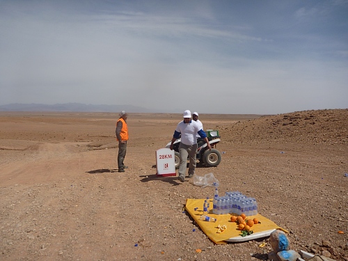Km 36 ist erreicht, seit einer Ewigkeit habe ich kein Wasser mehr, die Verpflegung besteht aus ein paar Datteln, die mir aber nicht bekommen. Was ich nicht weiss: Ich bin Fünftletzter, die zahlreichen Quads fungieren nun als Besenwagen, ich habe keine Hoffnung mehr auf Erfrischung.