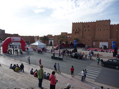 Plötzlich reisst mich ein Wasserstand aus meinen Gedanken, schnelle Dusche unter dem klaren Wasser der Plastikflasche. Angeblich noch 5 Minuten bis zum Ziel. Ich suche den Weg durch den Verkehr der Stadt, frage nach dem Weg. Dann geht es steil hinauf zum Ziel auf dem Place de Kasbah de Taourirt. Nach 4:12 Stunden komme ich ins Ziel, Platz 43. Was für ein Lauf! Ich habe viel erlebt auf meinen Läufen, aber das ist schon der Hit. Und ich bin schnell. Zusammen mit Eric und Jaques aus Lyon feiere ich diesen großartigen Lauf bis tief in die Nacht.