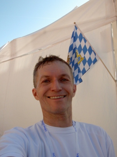 Hinter dem Ziel gibt es warmen Tee bei gefühlten 25 Grad. Außerdem gibt es einen Beutel mit Getränken und Obst. Unsere Taschen sind auch gut angekommen. 500 Meter entfernt gibt es ein Sportzentrum, in dessen Untergeschoss, also unter der Wasseroberfläche es eine Turnhalle mit ausreichend Duschen gibt. Bei den Herren ist das Wasser ausreichend warm. Bei den Frauen kalt. Zurück im Park beim Ziel bekommen wir schnell unsere Pasta mit Getränken. Meine Internet-Recherche per Handy ergibt für mich eine 3:59:56. Ich vergieße ein kleines Tränchen.