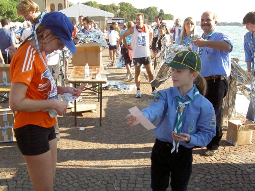 Eine junge Pfadfinderin überreicht mir eine schöne Medaille und einen Gutschein für die Pastaparty. Ich drehe mich um und sehe kurz darauf Judith ins Ziel einlaufen. Knapp drei Minuten nach mir. Wahnsinn, wie schnell man Zeit verlieren kann.