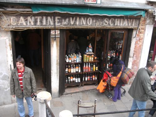 • Cantine del Vino ora Schiavi, gegenüber Gondelwerft am Rio di S. Trovaso / Ponte S. Trovaso, leckerer Wein und Häppchen.