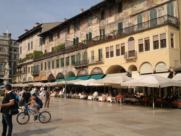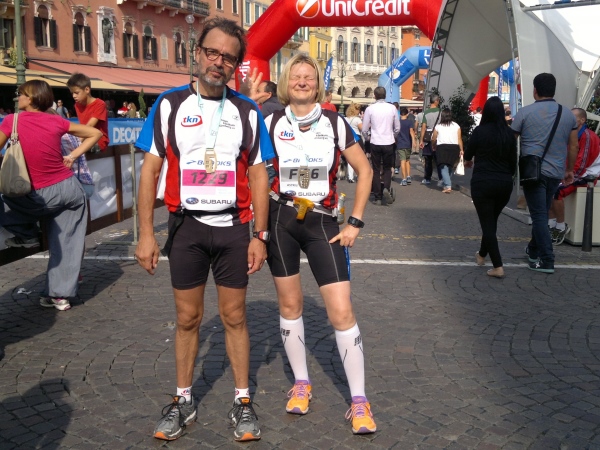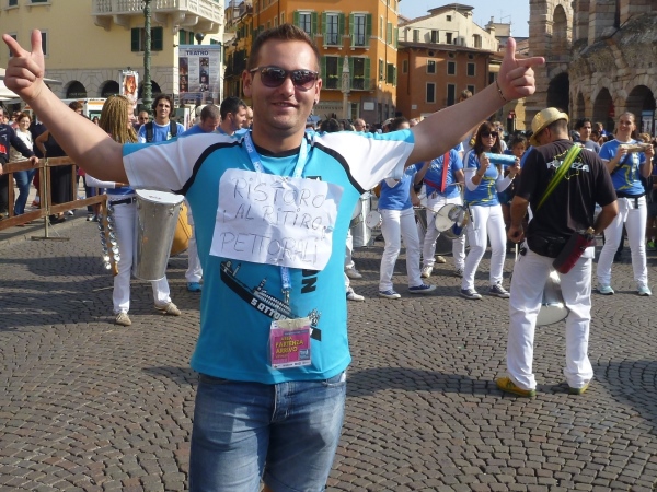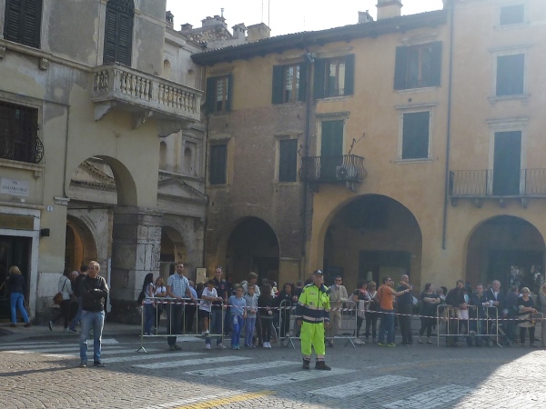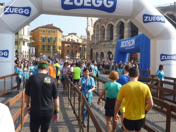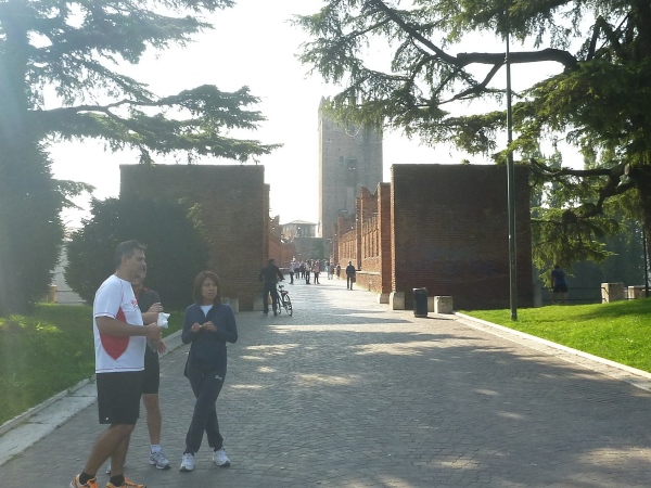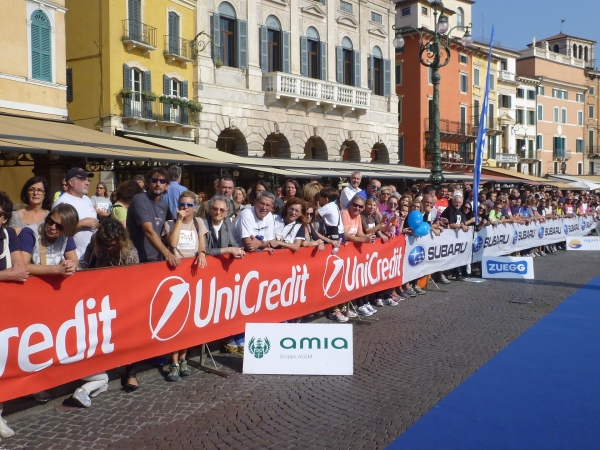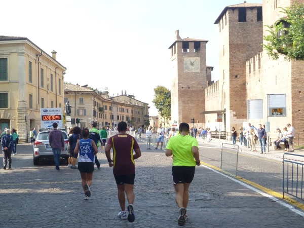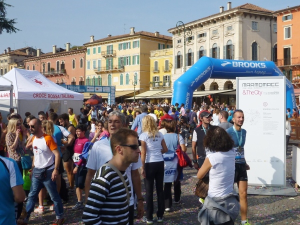 Vor einigen Monaten erhielten wir dann einen Newsletter, in dem es hieß, das Ziel sei auf die Piazza Erbe verlegt worden. Strecke und Ziel änderten sich dann nahezu bei jeder neuen Information, bis man Start und Ziel auf der Piazza Bra beließ. Ich würde mich auf jeden Fall freuen, wenn die Strecke wie in den Jahren zuvor wesentlich länger in der Altstadt bliebe und wenn man außerhalb mehr von den Wohngebieten der Veroneser sehen würde.