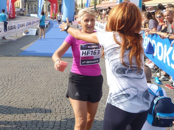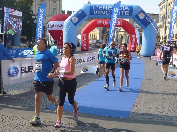 Um die Zielverpflegung zu erreichen, muss man sich durch die Expo-Stände samt der zahlreichen Besucher drängeln. Nicht jeder findet schnell dorthin. Einmal angekommen, erhält man dann aber alles, was das Herz begehrt - außer Bier, aber dafür leckeren Panettone (Kuchen). Auch einige gut gekleidete Herrschaften, die mit Sport wohl eher nichts zu tun haben, befüllen ihre Taschen mit den Köstlichkeiten. Massage und einen Busshuttle zur Duschgelegenheit gibt es auch.