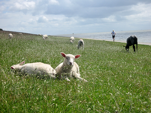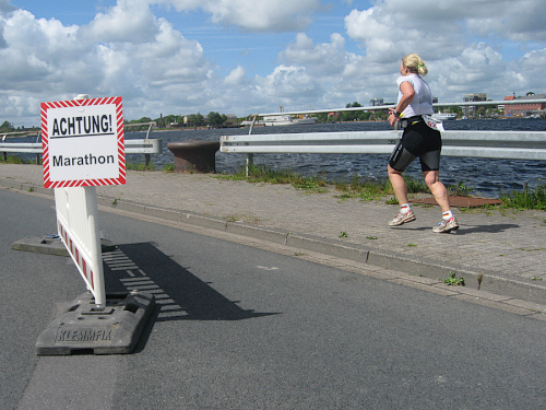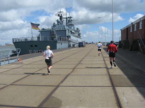 Niedersachsen: Gorch-Fock-Marathon in Wilhelmshafen, Deutschlands größter Marinestützpunkt. Bei strahlendem Sonnenschein und viel frischer Seeluft an der Nationalparkgrenze Wattenmeer zu laufen, ein wahrer Genuss. Auf der linken Seite Schafe, auf der rechten das Meer und den Wind immer im Rücken.