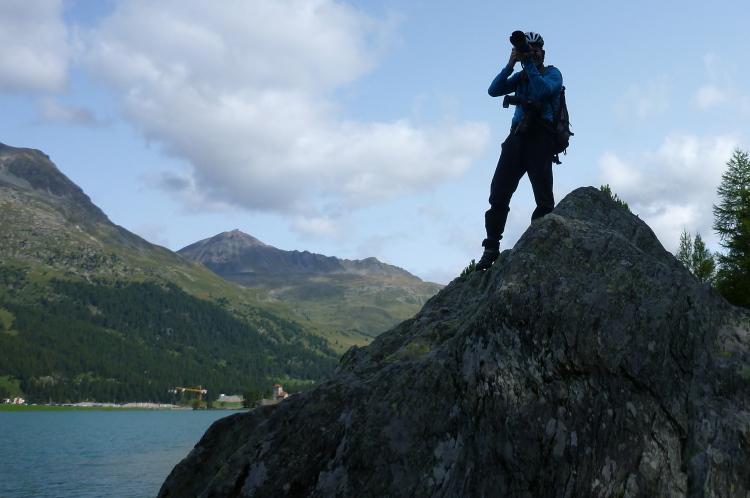 Von unserem schönen Hotel chesa surlej in Surlej, gegenüber dem Ort Silvaplana gelegen, erkunden wir per Pedes und Seilbahn die unmittelbare Umgebung. Dies gestaltet sich auch gerade per Seilbahn ausgesprochen preisfreundlich, da deren Nutzung ab einer zweiten Übernachtung im Herbergspreis inkludiert ist. Das haben wir in den vergangenen beiden Wochen durchaus anders erlebt. Ein zusätzliches Erlebnis besonderer Güte bescherte uns der Veranstalter in Form des Vertical Sommerlaufs, den ich am Vortag über 5,5 km und stolze 980 Höhenmeter unter die Füße genommen und über den ich auf trailrunning.de berichtet habe.