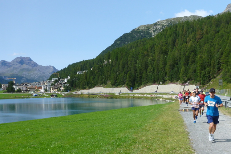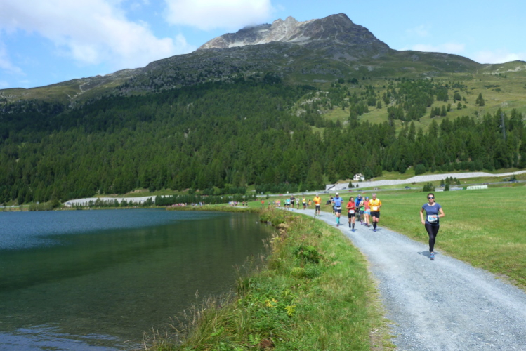 25,2 km mit rund +150/-250 Höhenmetern beim Engadiner Sommerlauf, Zeitlimit 4 Stunden. 11,7 km beim Muragl-Lauf.
