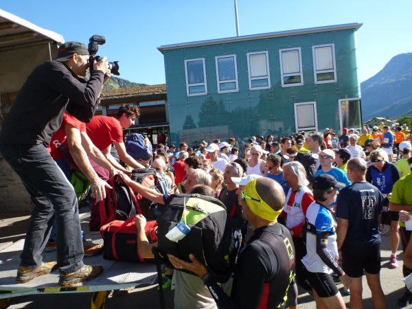 Am Bahnhof wartet bereits ein eigener Ziehharmonika-Bus, der zwei Mal durch Pontresina kreuzt, bevor er weitere Passagiere aufnimmt und Kurs Richtung Maloja nimmt. Kurz vor Sils ist das Gefährt übervoll und wahrscheinlich auch überladen. In der Turnhalle am Schulhaus bereiten sich die Teilnehmer auf ihr Rennen vor. Die letzten Nachmeldungen werden getätigt.