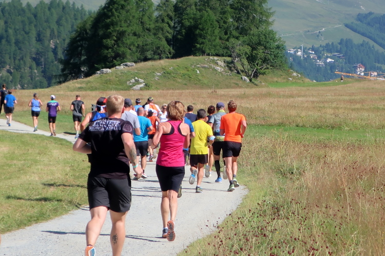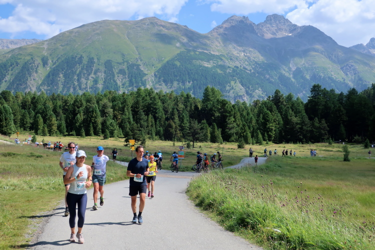 Engadiner Sommerlauf – klingt sehr entspannt! Nach unbeschwertem Jog in klarer, sommerlich lauer Bergluft, durch herrliche Landschaft, ganz unprätentiös, unaufgeregt, leicht und locker. Mit meinen Assoziationen liege ich in der Realität auch nicht ganz falsch. Nur: Ein kleines bescheidenes Läufchen ist es nicht, was sich dahinter verbirgt. Und die Location ist auch nicht ein unbekannter stiller Winkel der Schweiz, sondern eben „das Engadin“.