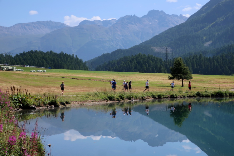 Das Hochtal des Engadins mag eine der abgelegensten Regionen der Schweiz sein, es ist aber zugleich eine der bekanntesten, beliebtesten und dank der Strahlkraft von St. Moritz auch mondänsten Destinationen des Landes. Über 80 km erstreckt es sich im Süden des Kantons Graubünden, dem Verlauf des hier noch jungen Inn folgend, von Nordost nach Südwest, im zunächst noch wilden, engen Unterengadin steil ansteigend, im vergleichsweise flachen, seenreichen, bereits auf 1.800 m Höhe gelegenen Oberengadin auslaufend. Und eben hier, im Oberengadin, sammelt sich Mitte August die naturliebende Läuferschaft zum gemeinsamen Aufgalopp.