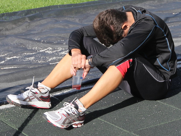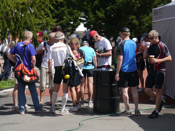 Den letzten schattenspendenden Baum haben wir längst gesehen. In der prallen Sonne laufen wir dem Flaz entlang. Fleißige Helfer pumpen Wasser aus der Erde, um die Läufer zu erfrischen. Getränke gibt es reichlich, auch Riegel, Obst und Gel. Die Versorgung ist perfekt.