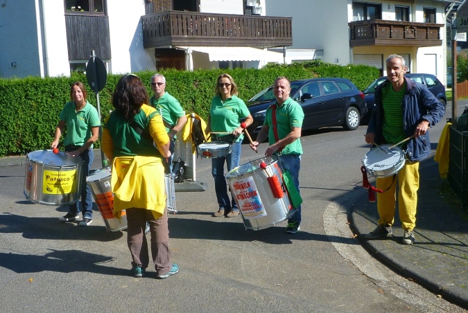 Linker Hand stellen gut gelaunte Anwohner Stehtische auf und platzieren Getränke darauf. Ich frage im Scherz, ob ich ein Weizen haben könnte. Aber nur ohne Alkohol wird mir geantwortet. Na, das ist doch genau das, was ich möchte und wir verabreden einen Getränkestopp für die nächste Runde.