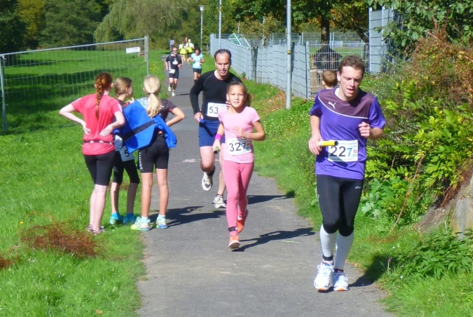 Der Durchlauf durch die Wechselzone ist stets stimmungsvoll. Die Staffelläufer feuern die Einzelläufer an. Es wird geklatscht und gerufen. Herrlich. Die ersten Staffeln kommen ins Ziel, da hab ich noch gut 1,5 Std, des Laufes vor mir.