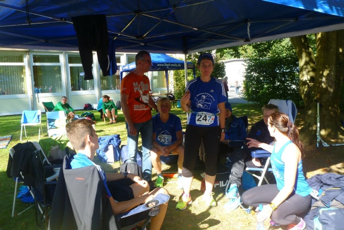 Die Startnummer und den Chip an der Deutschherrenschule gibt es wieder ohne großes Gedränge. Mit 67 angemeldeten Staffeln ist der Zuspruch größer als im letzten Jahr, aber immer noch verbesserungswürdig. Überall in der Wechselzone vor dem Schulgebäude herrscht reges Treiben. Pavillons, Bänke, Tische und Stühle werden aufgestellt.