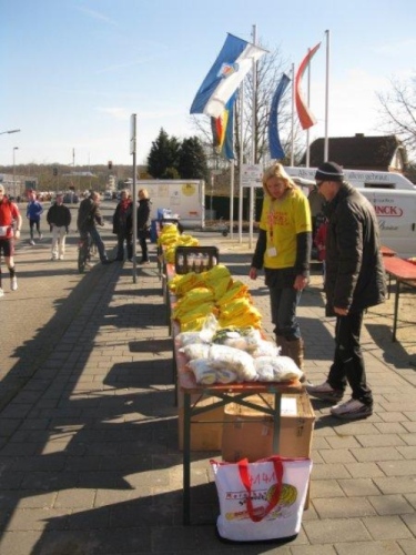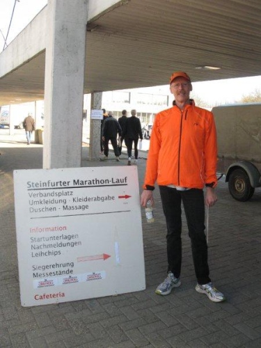 So mache ich mich mit Inge und Christiane als Fototeam in diesem Jahr etwas früher auf den Weg nach Steinfurt und erreiche nach einer Stunde Autofahrt die Technischen Schulen im Stadtteil Burgsteinfurt. Hier ist das Veranstaltungszentrum und auch hier hat man um- und ausgebaut. Nun wird für die Startnummernausgabe die Turnhalle genutzt und hier ist auch noch Platz für eine kleine Marathonmesse und eine Cafeteria. Auch sind genügend Parkplätze vorhanden.